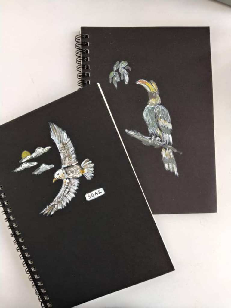 The following are examples of hand painted notebooks that you can use for your journaling. There is a possibility to customise your order. Each notebook is RM35.